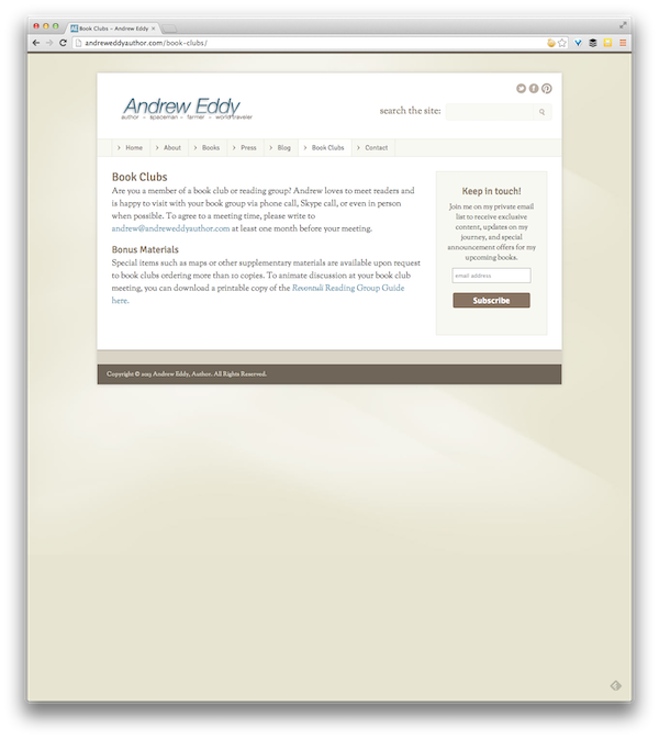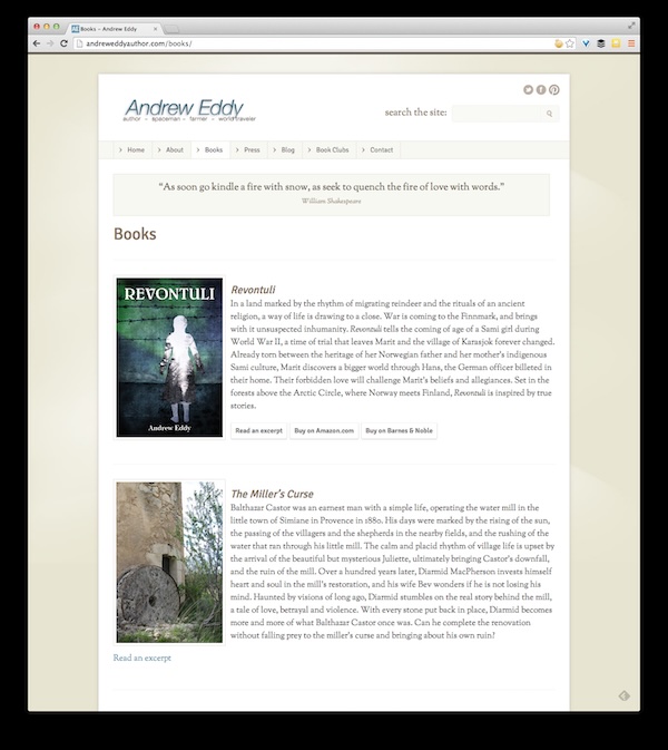 - Added Read an Excerpt and book retailer buy buttons to his Books page—readers love books and appreciate an easy route toward finding their next book!