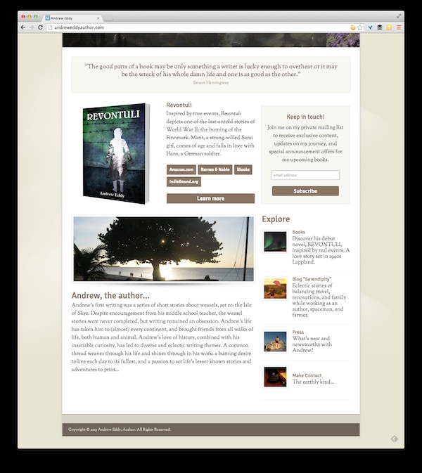 You can find more in-depth information about optimizing author websites on my Author Website page. Here are a handful of changes I implemented on Andrew's WordPress site: