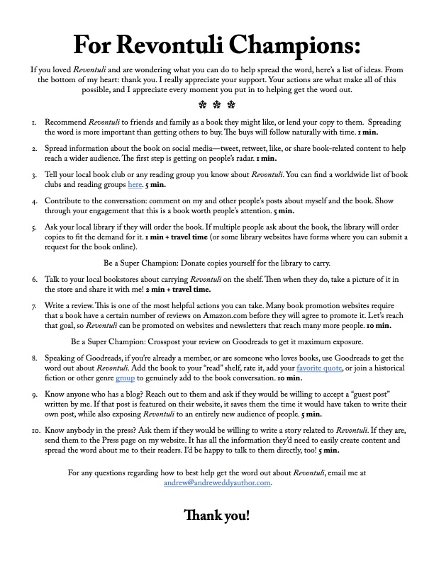 My Online Discoverability and Promotional Content pages provide a more detailed overview of how shareable content can strengthen connections between authors and readers. Here are a couple of things we did for Revontuli.